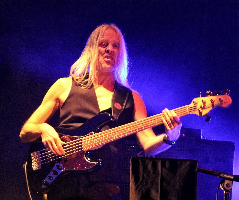 Decked in black as usual – with only keyboardist David Silver’s snazzy jacket’s bright red lapels adding a touch of colour – Shadow Circus delivered an energetic performance, deploying all the theatrical flair of their material and their trademark blend of classic symphonic prog and hard rock, powerful yet melodic and accessible. John Fontana – looking highly concentrated and just a bit tense – cranked out riffs and blistering solos on his trusty blue axe, while Silver’s impassive mien belied the exuberance of his Emerson-inspired keyboard runs (and that in spite of a few technical glitches). Sporting a purple-dyed beard and round mirrored shades, his microphone decorated with a large silver cross in pure Black Sabbath style, David Bobick handled his master-of-ceremonies duties with consummate ease. He introduced the album’s back story as soon as he appeared on stage at the end of the grandiose instrumental “Overture”, then put his theatrical training to good use while belting out the songs with gusto. The band wrapped up their set with one of their undisputed crowd-pleasers, “Willoughby”, which got the audience to sing along to the infectious chorus.