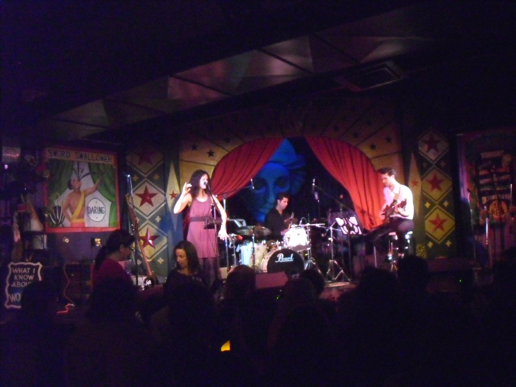 After a refreshing night’s sleep, on Sunday morning we were back at Roxy and Dukes for another day of great music and friendship. Though the Sunday opening act was the only unknown quantity to the vast majority of the audience,  Tammy Scheffer’s Morning Bound, an experimental trio of voice, bass and drums led by extremely talented Israeli-born singer Tammy Scheffer,  proved to be the real surprise of the festival. Drafted in a few months ago to replace Oblivion Sun, they provided that genuine boundary-breaking element that progressive rock seems all too often to have left by the wayside. When the slight, curly-haired Scheffer stepped on stage and started to sing, my jaw dropped to the floor and stayed there for the whole duration of the band’s set. Her voice soared effortlessly, pitch-perfect and smooth as honey, bending the music to its will and twining with the intricate patterns laid out by bassist Russ Flynn and drummer Ronen Itzik. Tape loops were used sparingly but effectively to add further layers of interest to her performance, but she would have caused a stir even if she had sung without any accompaniment at all. With her graceful posture and charmingly measured gestures punctuating her astonishing vocal exertions, Tammy offered a performance that while devoid of any references to classic prog, was as progressive as they come. One of the undisputed highlights of an hour of musical excellence was her deconstruction of Suzanne Vega’s wistful “Marlene on the Wall”. Tammy’s flawless set proved once again that it is not necessary to rely on overly complex arrangements and large instrumentation to produce authentically forward-looking music, and celebrated the power and beauty of the human voice.